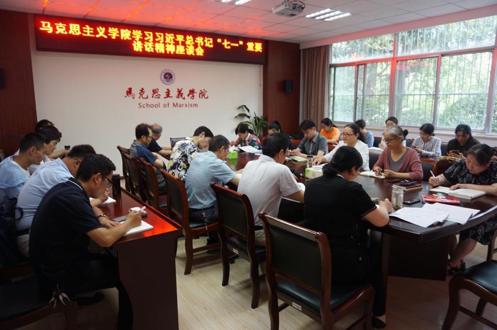 7月2日下午,马克思主义学院召开学习习近平总书记“七一”重要讲话精神座谈会。座谈会由马克思主义学院院长沈春梅主持,全院教师参加了座谈。
