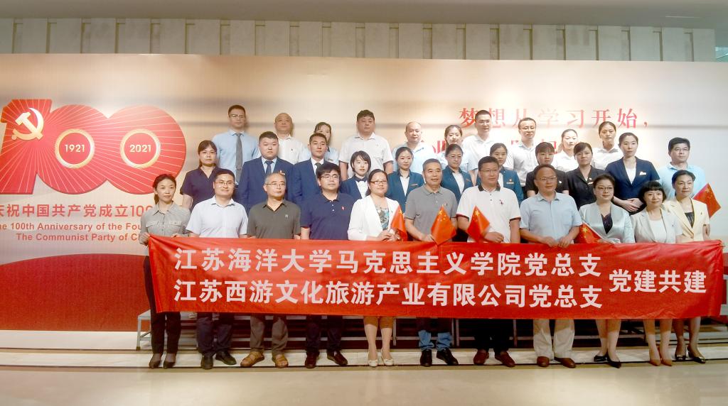 7月13日上午,江苏西游文旅党总支与马克思主义学院党总支党史学习教育共建活动在西游文旅海州湾会议中心“E起学习”工作室举行。西游文旅党总支书记张贵新、马克思主义学院党总支书记张学武、院长沈春梅及西游文旅各权属党支部书记及党员代表、马克思主义学院教师代表等共计40人参加共建活动。