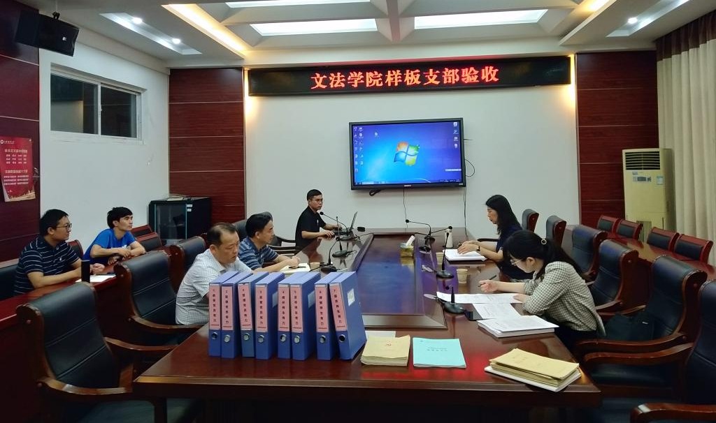 为全面贯彻落实新时代高校党建总要求,有效推进我校党建“双创”工作,通过以“考”促建,8月31日下午,机关党委纪检委员王秀娟、党委组织部党建科科长王静到文法学院对党建“双创”样板党支部法学系学生党支部和中文系党支部进行样板党支部验收。党委书记吴价宝主持会议,副书记王国银、中文系主任袁丁和学工办负责人蒋莹莹参加会议。