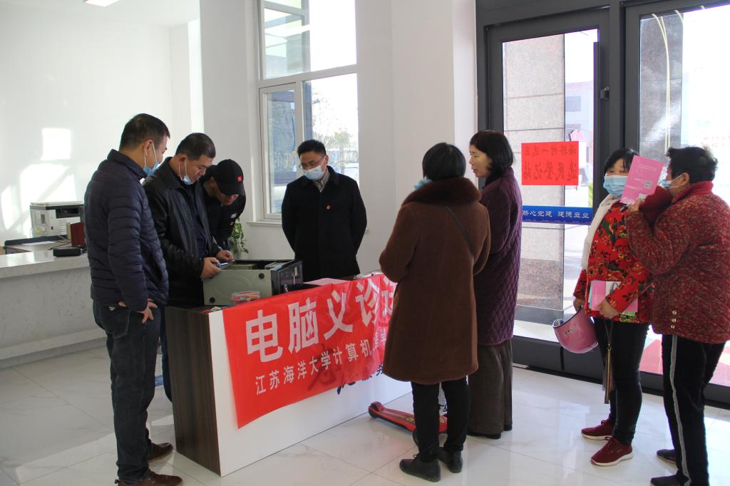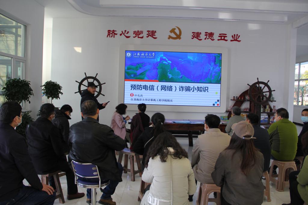 在随后的“我为群众办实事”行动中,计算机工程学院院长仲兆满为村民们举行了网络防诈骗知识讲座。仲院长以实际发生的案件为例,历数了常见的如QQ盗号、网络兼职刷单、网络征婚交友、网络购物、网上中奖、虚假安全账户等网络诈骗手段,并给出了具体防范措施。此次讲座为村民们敲响了网络安全防范的警钟,筑起了心理“防火墙”,提高了村民们自我防骗意识。陈书谦、张民强和朱海峰三位实验室党员教师,充分发挥专业特色和技术优势,为村民们义务开展“电脑义诊进乡村”活动,受到了村民们热烈的欢迎。
