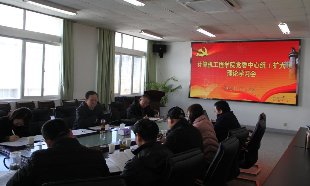 11月22日上午,计算机工程学院党委理论学习中心组(扩大)在计算机楼306会议室进行集中学习,学院党委委员、支部书记参加学习,会议由学院党委书记唐瑶主持。校党委副书记史顺良、机关党委书记韩振响到会旁听指导。