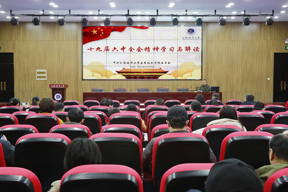 11月24日下午,应用技术学院党委在敦行楼201报告厅召开党的十九届六中全会精神专题学习会。会议由学院党委副书记时树奎主持,全院教职工参加。