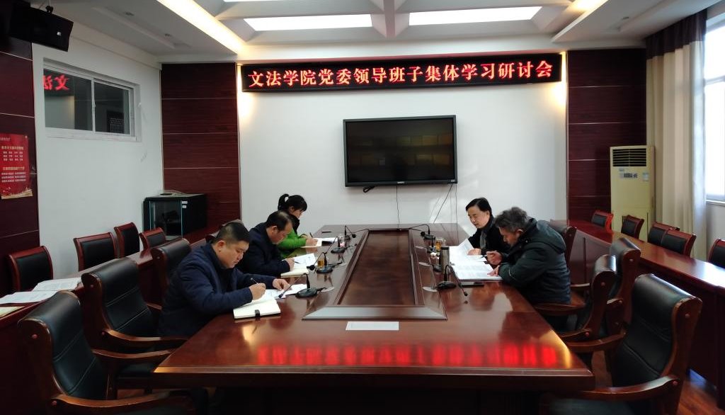 11月23日上午,文法学院党委领导班子在文渊楼216会议室举行集体学习会,系统学习党的十九届六中全会精神。党委书记吴价宝主持会议,领导班子全体成员参加会议。