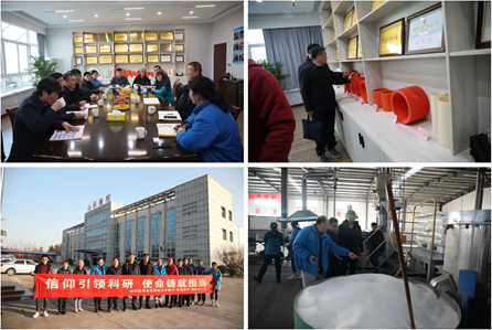 东海县发改委副主任何计文组织了材料支部教师与江苏瀚能电器有限公司进行“产学研”合作交流。总经理吴金柱对材料教师党支部全体教师的到来表示热烈欢迎,并就企业的现状和技术需求做了简短的介绍,他表示“新材料的开发不是一蹴而就的,十分希望江苏海洋大学高分子专业的年轻博士能够进入瀚能做长期技术研究,为企业高性能聚丙烯管道的开发贡献力量”。交流过程中,双方希望以成立研究生工作站的形式进一步加强合作。会后,总经理陪同全体党员教师参观了生产车间。