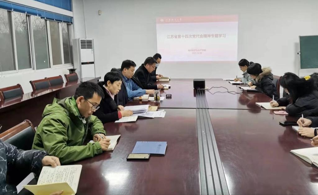 12月22日下午,海洋科学与水产学院党委理论学习中心组开展“江苏省第十四次党代会精神”专题学习会,学院党委班子成员和各党支部书记参加学习,学习会由学院党委书记杨天华主持。