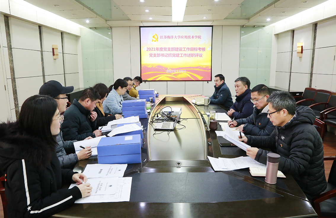 1月6日,应用技术学院党委在行政楼三楼会议室召开2021年度党支部建设工作目标考核暨党支部书记述职报告会。学院领导丁兆奎、李明金、隋福利、时树奎,全体党支部书记和党政办负责人出席会议。会议由院长丁兆奎主持。