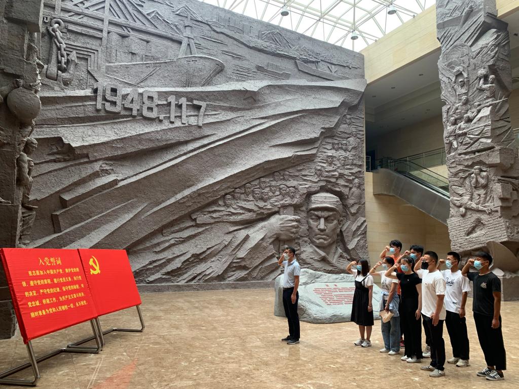 活动中,新接收的预备党员在党支部书记仝友鹏老师的带领下,举行了入党宣誓仪式,支部其他党员同志一同重温入党誓词。随后,党员们参观了革命纪念馆的各个展厅,在一件件饱经沧桑的珍贵文物、一张张定格历史的资料照片、一幕幕展现风云变迁的珍贵影像的呈现下,大家回顾了连云港战争时期那段可歌可泣的烽火岁月,感受了革命先烈们不顾个人安危,出生入死、抛头颅洒热血的奉献精神。