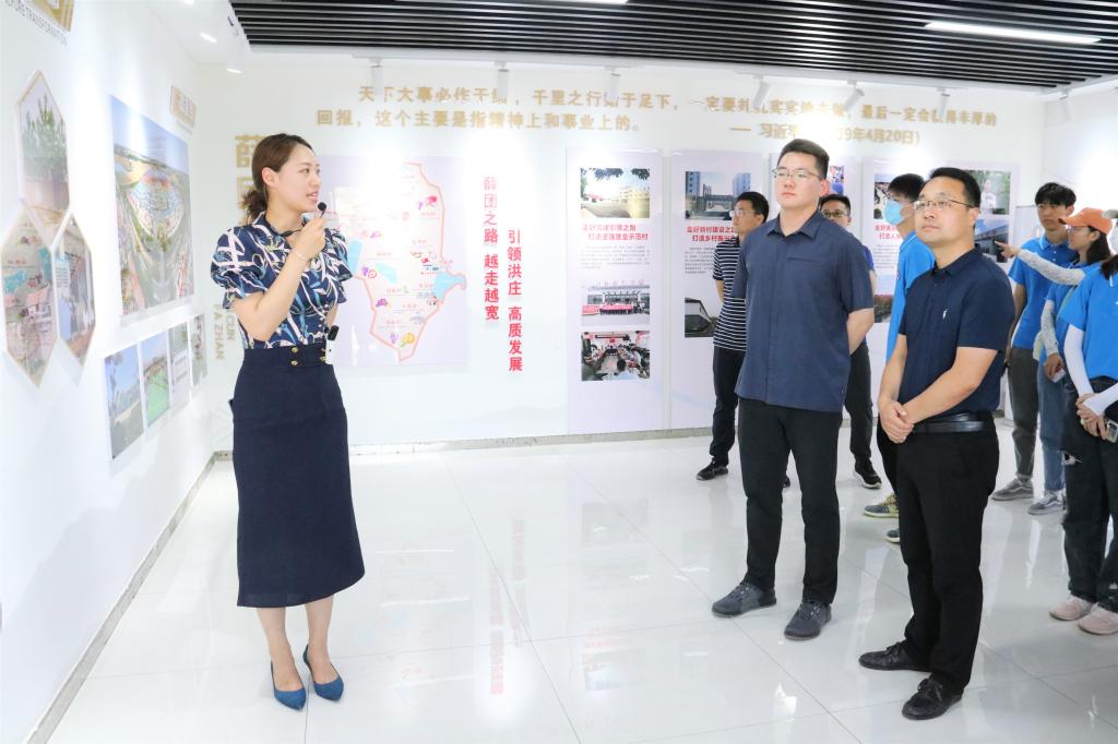 在工作人员的引导下,支部全体党员、学生骨干“循着习近平总书记的足迹”来到了薛团村考察学习。支部全体党员、学生骨干在此观看了习近平总书记2009年视察时的影像资料,切身感受薛团村在习近平总书记的亲切关怀下所取得的成绩,如今,薛团村已是国家级乡村治理示范村、江苏省特色田园乡村、江苏省文明村、江苏省社会主义新农村建设先进村。