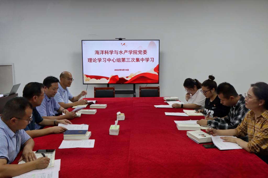 9月14日下午,海洋科学与水产学院党委理论学习中心组在海洋楼211会议室召开集中学习会,深入学习习近平总书记最新系列重要讲话精神。学院党委书记黄金虎主持会议。学院党政班子成员、院党委委员、各党支部书记参加了学习。