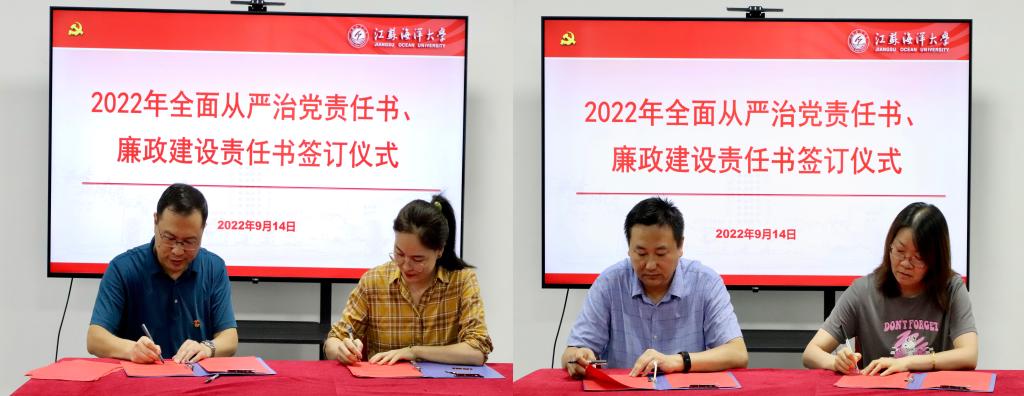 学院党委书记黄金虎与班子中的党员成员、各支部书记现场签订了《全面从严治党主体责任书》,与班子中的民主党派成员签订了《廉政建设责任书》;徐军田院长分别与各系(中心)、室等主要负责人签订了《廉政建设责任书》。
