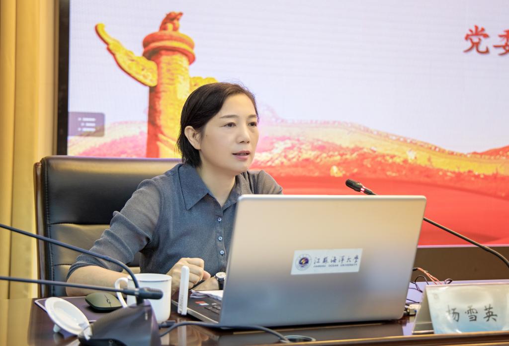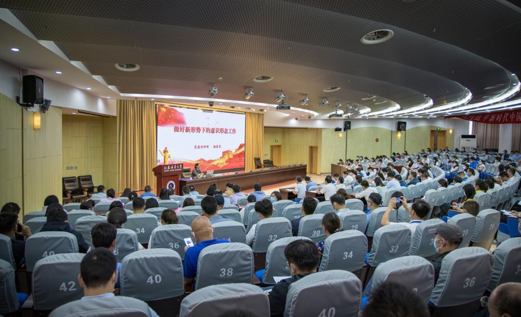 为深入学习习近平新时代中国特色社会主义思想,学习贯彻落实中央、省委和学校党委关于意识形态工作的部署要求,推动意识形态工作责任制落实落细落地,9月22日下午,机关党委特别邀请校党委常委、党委宣传部部长杨雪英教授在会议中心黄海厅作意识形态工作专题辅导报告。机关全体教职工及部分辅导员代表参加会议。机关党委书记韩振响主持会议。
