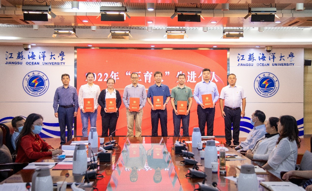 会议对机关2022年“三育人”先进个人进行了表彰。机关党委委员、纪委审查调查处处长缪克平宣读了《中共江苏海洋大学机关委员会关于表彰2022年“三育人”先进个人的决定》。纪延光、韩振响为伏晓姝、李剑、吴志涛、张贤伟、郑海军、郭戈等6位同志颁发了荣誉证书。