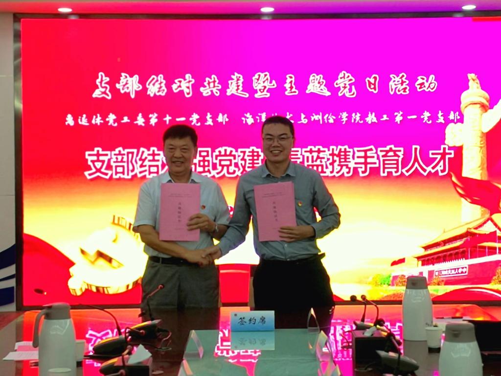 夕阳红灿不觉晚,老有所为未知秋。刘平昌在讲话中表示:支部老教师、老党员退休不退志,一直心系学校事业发展老有所为,支部将按照共建协议在青年教师成长历程中发挥政治引领作用,支持和帮助青年教师实现思想素质和业务能力双提升。王仁对老教师们的关心表示了衷心的感谢,表示要学习传承他们的好思想、好传统、好作风和好经验,推进支部建设,提升综合素质和能力,同时为老同志退休后的工作和生活提供帮助,做好服务。双方承诺将本着“双向互动、优势互补、服务大局、合作共建”的原则,建立互帮、互助、互学的全面协作关系,促进基层党组织和人才队伍建设,达到“推动发展、服务师生、凝聚人心、促进和谐”的目标要求。