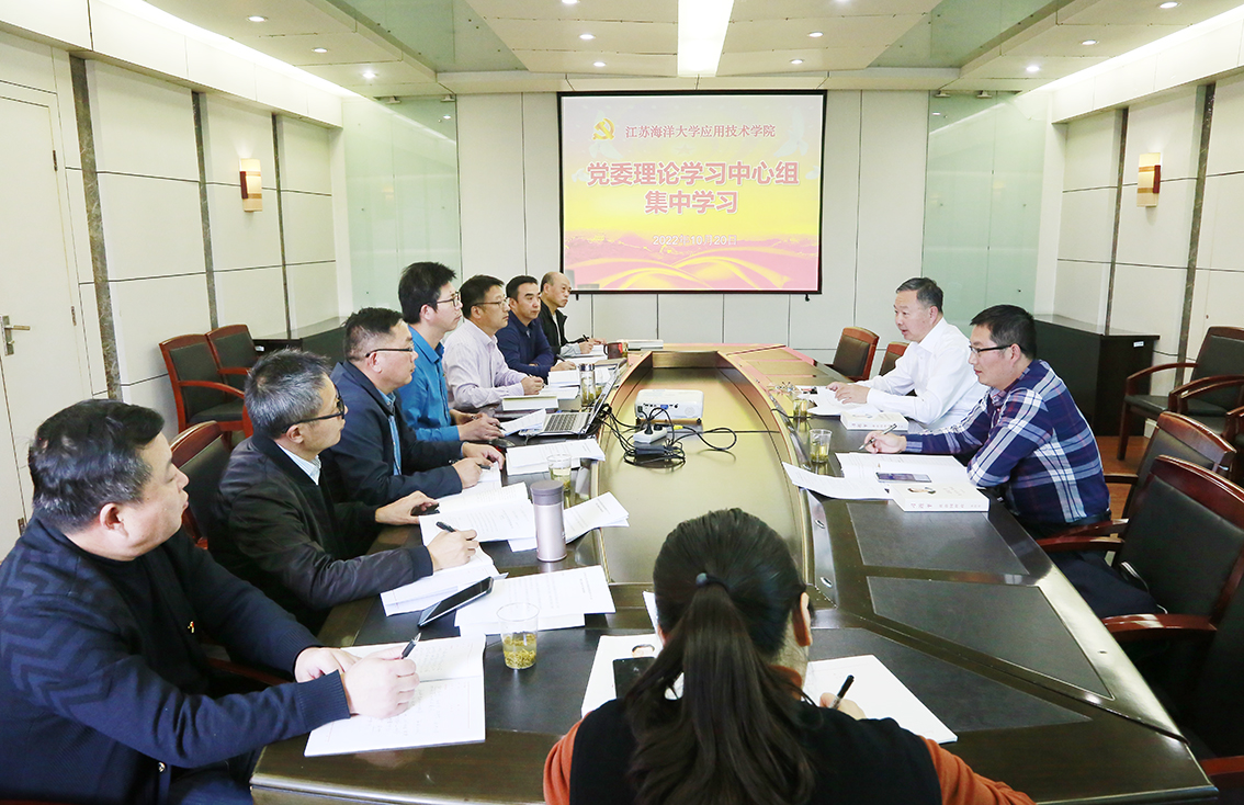 10月20日下午,应用技术学院党委理论学习中心组集中学习会在宋跳校区行政楼三楼会议室举行。校长宁晓明全程巡听督学了学习会。应用技术学院党委书记赵求勇主持会议。校党委宣传部副部长徐凯出席会议,应用技术学院党委中心组全体成员参加学习。