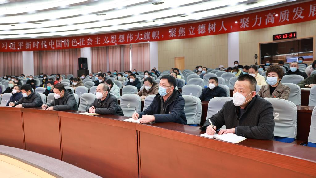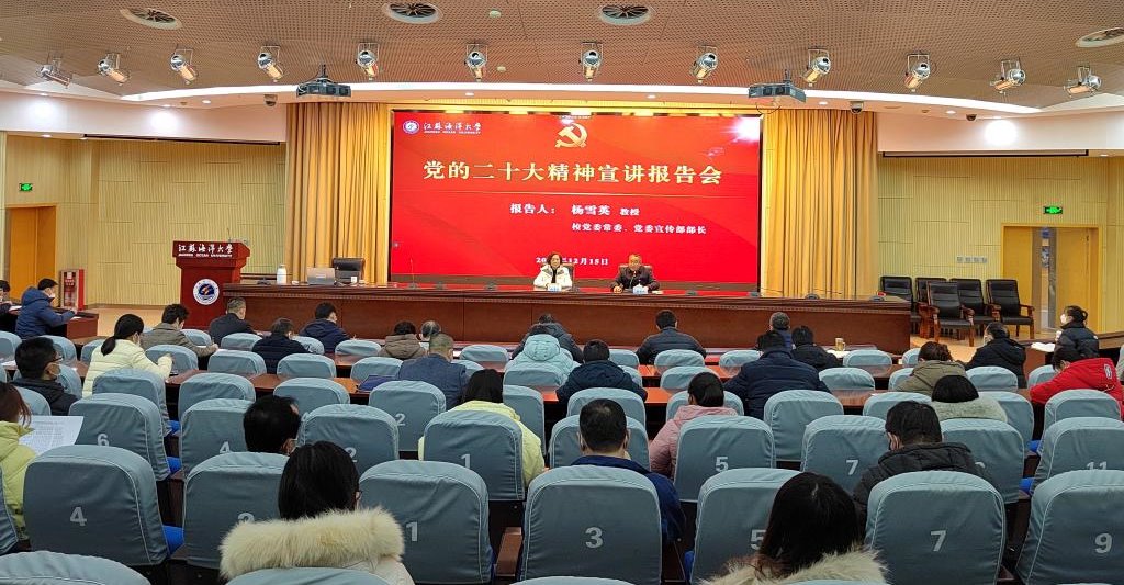 为认真学习宣传贯彻党的二十大精神,12月15日下午,机关党委、环境与化学工程学院、商学院、艺术设计学院联合邀请校党委常委、党委宣传部部长杨雪英教授在会议中心黄海厅作党的二十大精神专题宣讲报告。报告会采取线上线下相结合形式进行,140余名党员干部和教职工代表参加现场报告会。报告会由机关党委书记兼党委组织部副部长韩振响主持。