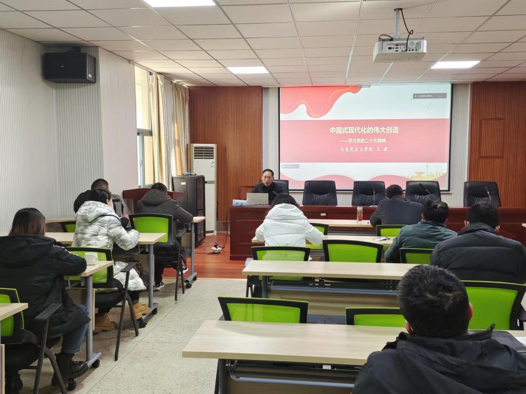 会上,王波以“以中国式现代化的伟大创造”为题,从“中国式现代化何以可能,从中国式现代化何以形成,从中国式现代化何以特殊,从中国式现代化何以拓展”等四个方面指出中国式现代化是社会主义现代化,表现出一系列鲜明特征,具有巨大的世界影响,新时代新征程将进一步深化拓展中国式现代化。通过此次报告会使参会人员对中国式现代化有了更深层次理解。