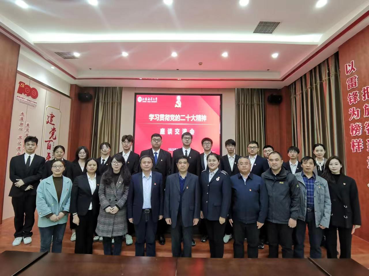 在“雷锋车”组党员学习室,举办了学习贯彻党的二十大精神座谈交流会。首先,纪延光领学了人民日报评论员文章《切实把党的二十大精神落实到位——论学习贯彻党的二十届二中全会精神》。纪延光强调,各位党员要在全面学习、全面把握、全面落实党的二十大精神上带好头、作表率。接着,权太琦跟大家分享了自己当选党的二十大代表和参加党的二十大的经历、心路历程,生动形象地回顾了党的二十大盛况,谈了学习党的二十大精神心得体会等。机关第二党支部党员代表程雪,环境与化学工程学院本科生第一党支部党员代表孙志伟、赵英豪、郑元洲、王博等四位同学分别围绕各自的工作、学习实际作了交流发言。