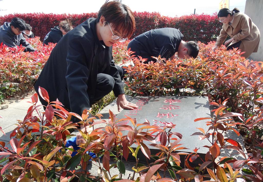 全体同志进入烈士陵园,俯身于烈士墓碑前,怀着崇敬和感恩的心情,认真、仔细地擦拭每一块烈士的墓碑,以此表达对革命烈士的崇敬与哀思。
