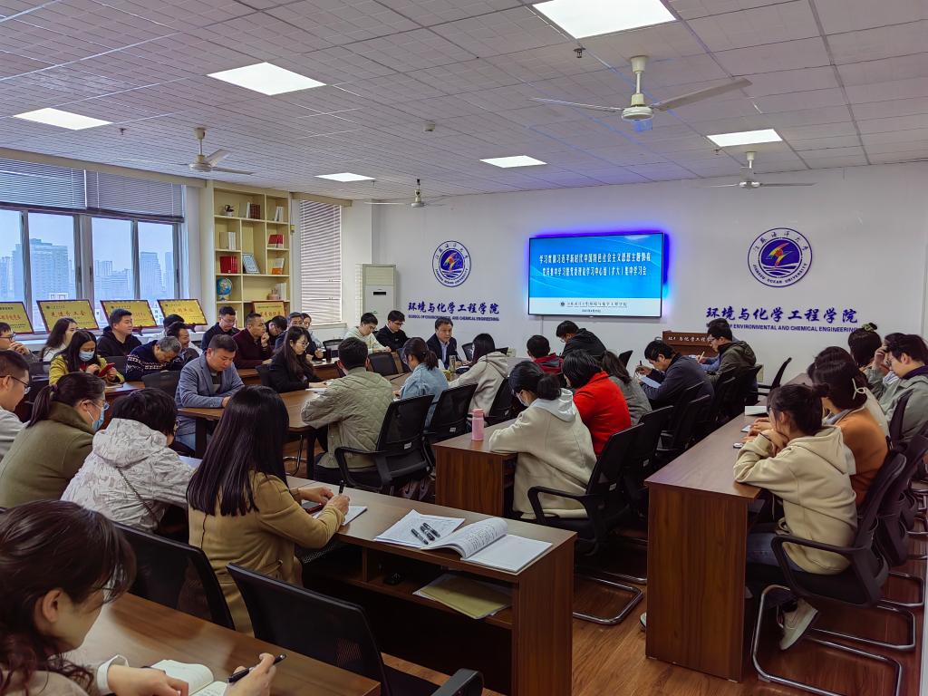 4月25日,环境与化学工程学院在文达楼1003会议室召开学习贯彻习近平新时代中国特色社会主义思想主题教育集中学习会议。学院全体师生党员参加会议。