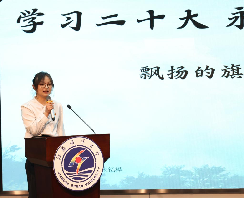 比赛现场,应用技术学院朱钇桦同学以“飘扬的旗帜——弘扬时代楷模精神 争做新时代奋斗者”为题,讲述了时代楷模王继才、王仕花夫妇32年如一日守护开山岛的故事,阐述了“守岛就是守国”的家国情怀,用大学生的声音呼吁青年团员弘扬时代楷模精神,争做不忘初心牢记使命的新时代奋斗者。