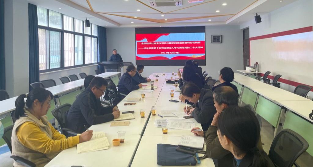 为深入开展习近平新时代中国特色社会主义思想主题教育,认真领会党的二十大精神,凝聚奋发前进力量,4月28日上午,机关党委第十五党支部书记丁兆奎为全体党员干部上了一堂专题党课。