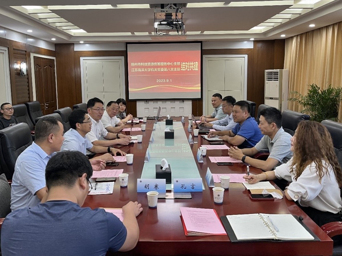 9月1日下午,扬州市科技资源统筹服务中心部长孙建文,副部长陈序一行到访我校,与我校机关党委第八党支部举办党支部结对共建活动。机关党委第八党支部书记、科技处处长戴红伟主持共建合作交流活动。