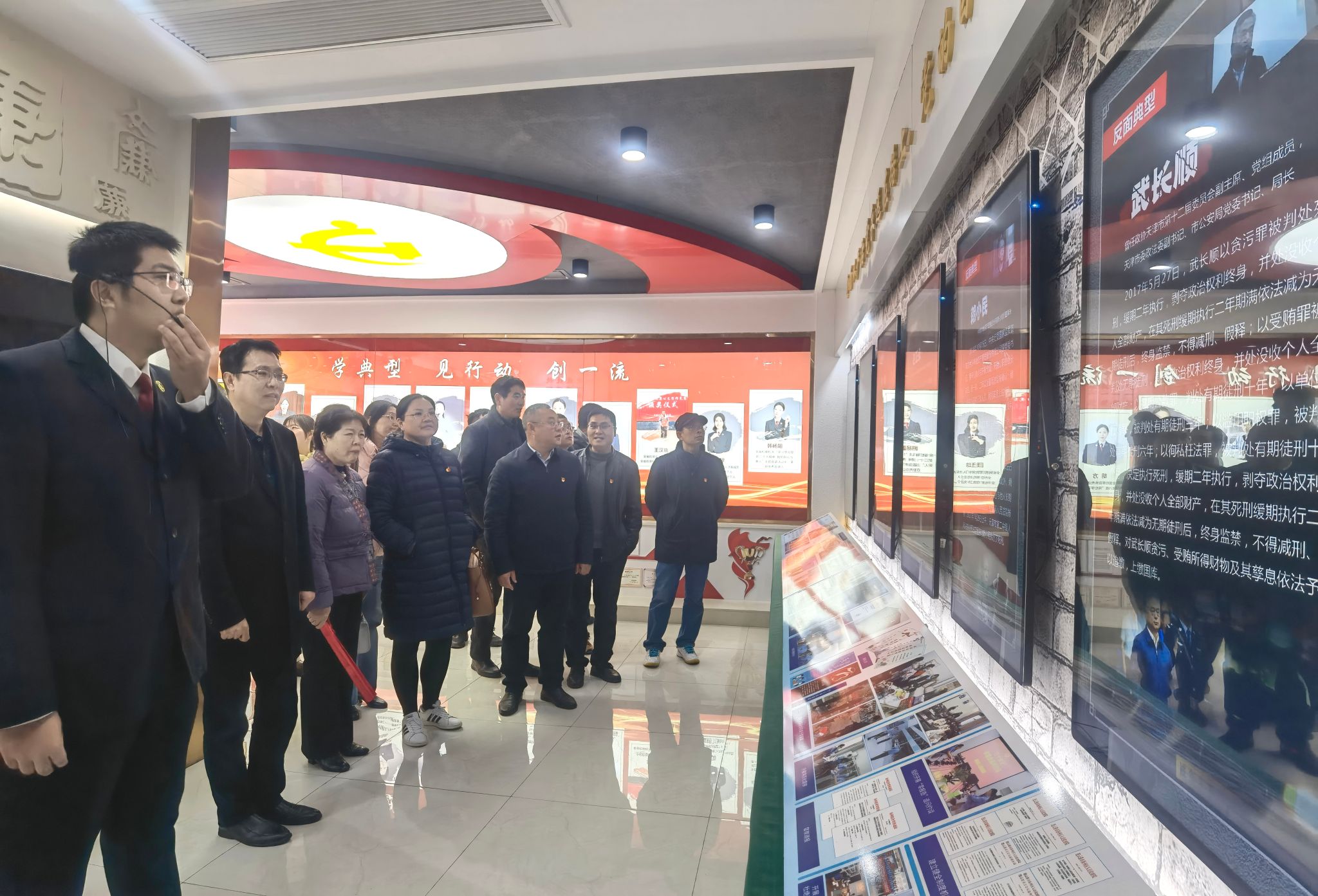 在海州区检察院,跟随讲解员的引导,大家依次参观了融媒体中心、廉政警示教育基地、政治建设实践基地、海州古城公益诉讼保护展厅等,认真学习了中国共产党章程、中国共产党人精神谱系,系统回顾了中国共产党历次全国代表大会,重温中国共产党的光辉历程。大家重点参观了党员干部廉政警示教育基地。党员干部廉政警示教育基地设置序言、正面典型、反面典型、情景再现、法规制度等版块,展厅采用现代信息技术手段,利用声光电、多媒体、浮雕、展板等多种媒介,通过图片、实物、文字、微电影等形式剖析了党员干部违纪违法犯罪的典型案例,一个个发人深省的案例、一个个鲜活的事实、一段段声泪俱下的忏悔,宛如一声声警钟,使大家受到了党性、党风、党纪教育和思想道德教育,让在场的每一位党员干部心灵上得到警醒和震撼。大家纷纷表示,要从违纪违法典型案例中吸取教训,引以为鉴,切实做到警钟长鸣、警惕长存,筑牢拒腐防变思想防线,以求真务实、真抓实干的工作作风做好本职工作。