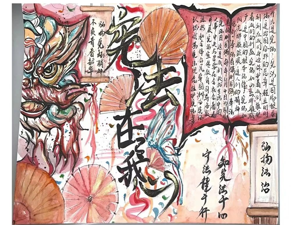 此外,商学院面向全校学生开展宪法宣传主题手抄报评比活动,在商学院、文法学院、艺术设计学院、海洋食品与生物工程学院中引发了广泛参与和热烈影响。