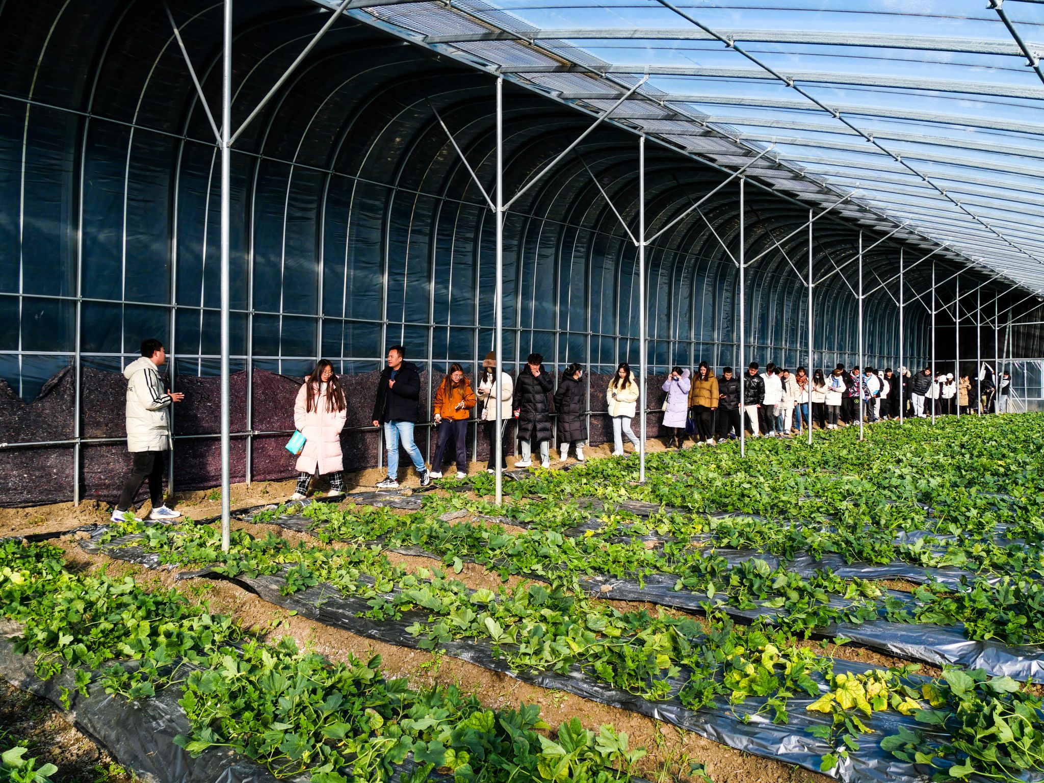 青年师生首先来到谢意家庭农场,在新坝村党总支副书记谢意的讲解下,大家学习了现代化农业理念,体验了“绿色+品牌”的农场发展道路。