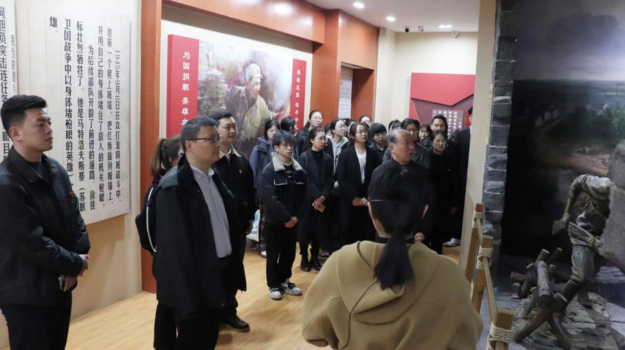 3月30日,应用技术学院师生代表赴淮海战役纪念馆开展主题党日活动,共同缅怀革命先烈,传承革命精神,汲取奋进力量。祭扫仪式的开始,大家在雄伟庄严的淮海战役烈士纪念塔前肃立默哀,向革命烈士敬献花篮和鲜花,并绕塔一周,驻足瞻仰塔基上的浮雕,表达对革命先烈的无限哀思和崇高敬意。在学院党委书记赵求勇带领下,面向鲜红党旗和淮海战役烈士纪念塔,同志们紧握右拳,用铿锵有力的声音重温入党誓词,鞭策和鼓励自己不忘初心、牢记使命。宣誓完毕后,一行人步入淮海战役纪念馆,先后参观了序厅、战前形势厅、战役实施厅、战役胜利厅、人民支前厅、缅怀英烈厅,馆中的一张张图片、一件件实物、一个个实景,生动地再现了淮海战役的情景,让大家重温了那段波澜壮阔的历史,理解了“淮海战役就是小推车推出来的胜利”的深刻内涵,感受到了“听党指挥、依靠人民、团结协同、决战决胜”的淮海战役精神。