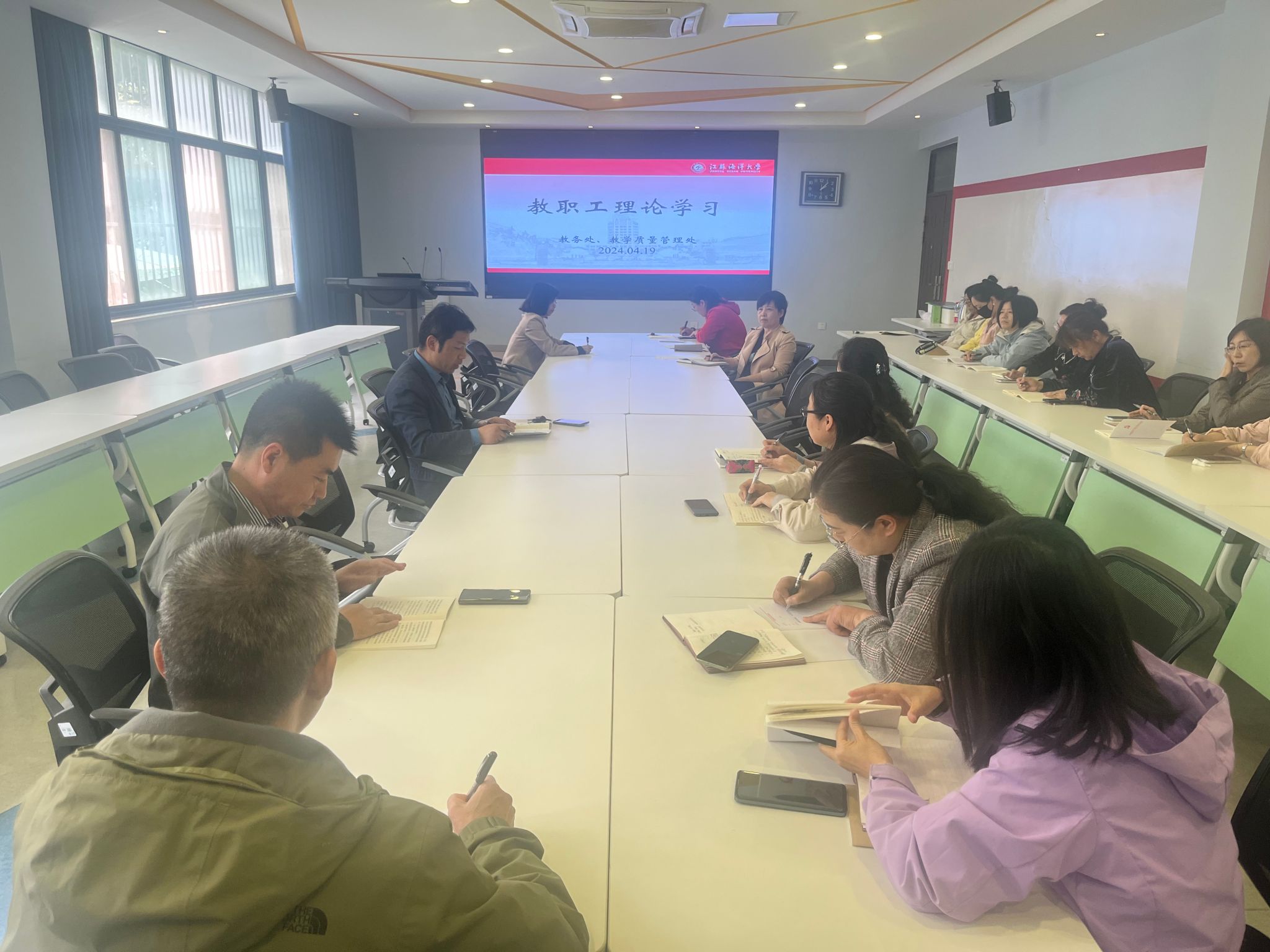 为深入学习贯彻习近平总书记关于党的自我革命的重要思想,推动全面从严治党向纵深发展,4月19日,机关教学管理党支部在文渊楼115室召开教职工理论学习会议,专题研究部署党纪学习教育工作。