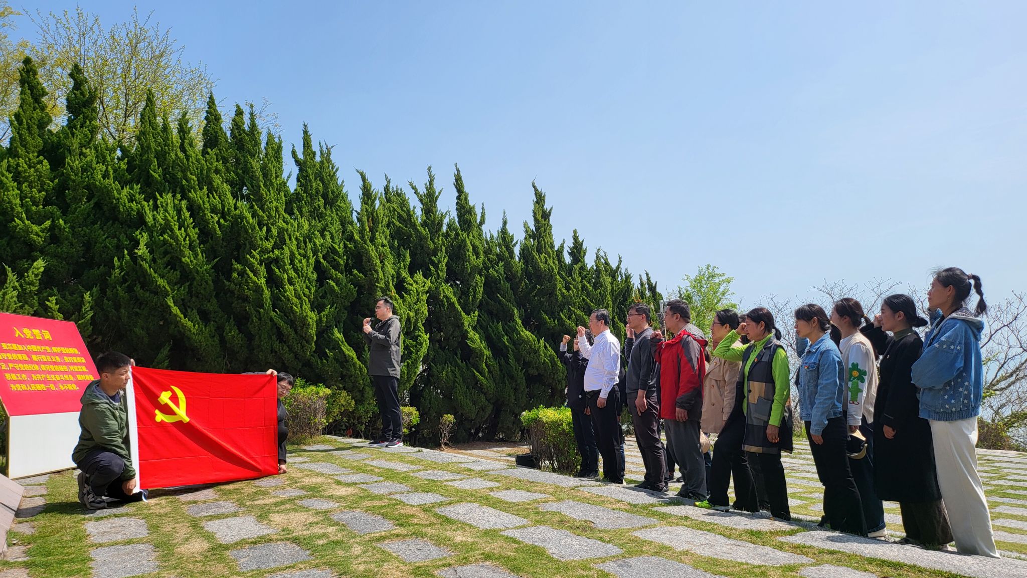 上午十点,大家来到“邓小平和人民在一起”雕塑公园。全体党员在讲解员的介绍引领下,依次瞻仰参观,重温伟人伟绩,深刻感悟伟人重视纪律建设讲话精神的内涵。全体党员在雕像前,在领誓员的带领下,面向鲜红的党旗,高举右拳,庄严宣誓,重温入党誓词,坚定理想信念。