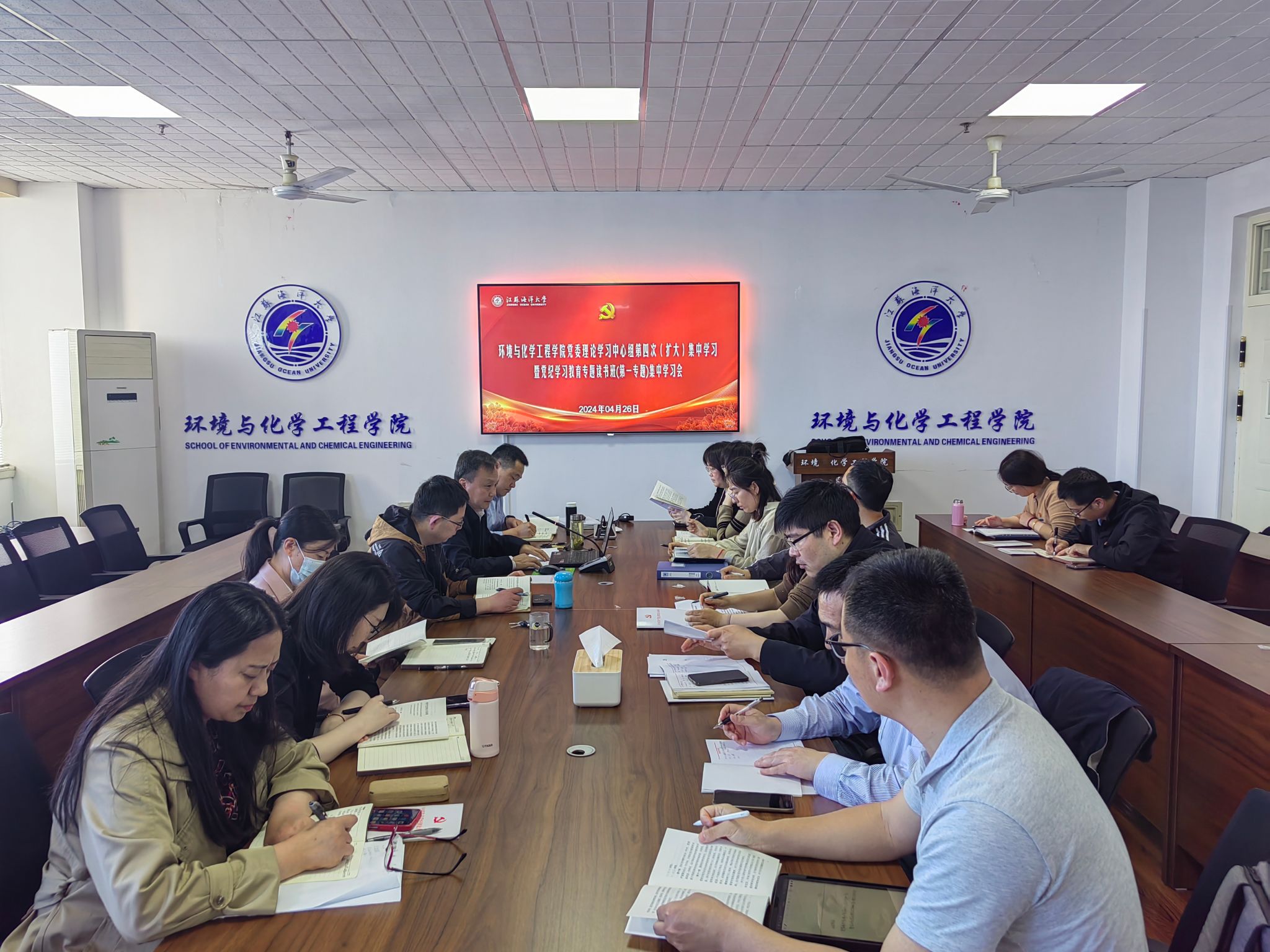 4月26日,环境与化学工程学院党委在文达楼1003会议室召开党委理论学习中心组(扩大)学习会暨党纪学习教育专题读书班集中学习会。学习会由学院党委书记张明星主持。学院党政领导班子成员、全体党支部书记和纪检委员参加学习。