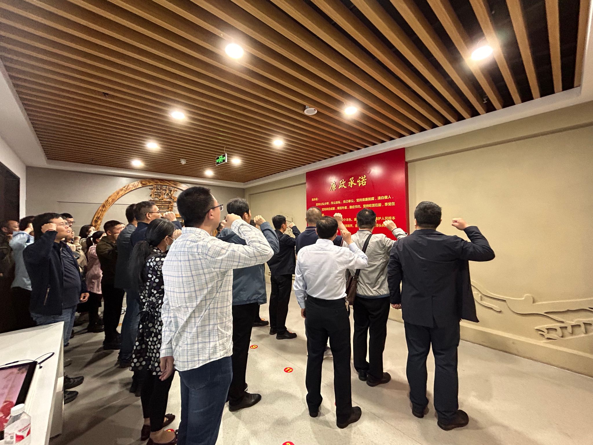 “廉润晶都”廉洁警示教育基地有政治铸魂、以案为鉴、崇法尚纪、家风传承四个篇章,运用声光电、创意场景、文献资料等多重表现手法,从正反两个方面,教育引导党员干部提高政治站位、坚定理想信念,自觉遵纪守法。老师们来到展厅,在讲解员的解说和带领下,了解东海县坚定不移全面从严治党、把纪律和规矩挺在前面的实践探索,从违纪违法典型案例中深刻汲取教训,用身边事教育身边人,以案促学、以训助学,警示教育广大党员干部时刻筑牢拒腐防变思想防线、永葆清正廉洁政治本色。在一个个案例视频、一幅幅警示图片、一份份忏悔书前,老师们不时驻足细看,交流讨论,用心感悟,更加深刻地认识到廉洁自律的重要性。参观结束后,党委书记王秋玉带领全体教职工党员高举右拳,进行了庄严的“廉政承诺”宣誓。