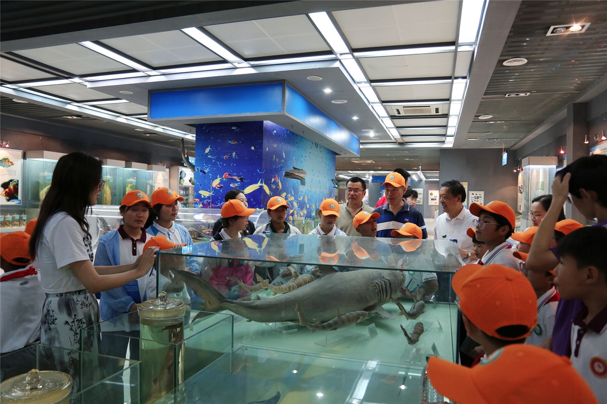 时值孟夏,赣榆区青少年发展支持中心的孩子们在离退休老党员、青年教师党员、研学老师和学生志愿者的带领下,共同参观了江苏海洋大学海洋经济与文化研究中心和海洋馆,通过认知海洋、经略海洋、人文海洋的展示主线,了解了江苏海洋资源地理优势、海洋经济发展现状、海洋科技创新进展、海洋文化历史脉络,并近距离观察海洋生物标本,丰富了海洋文化知识。