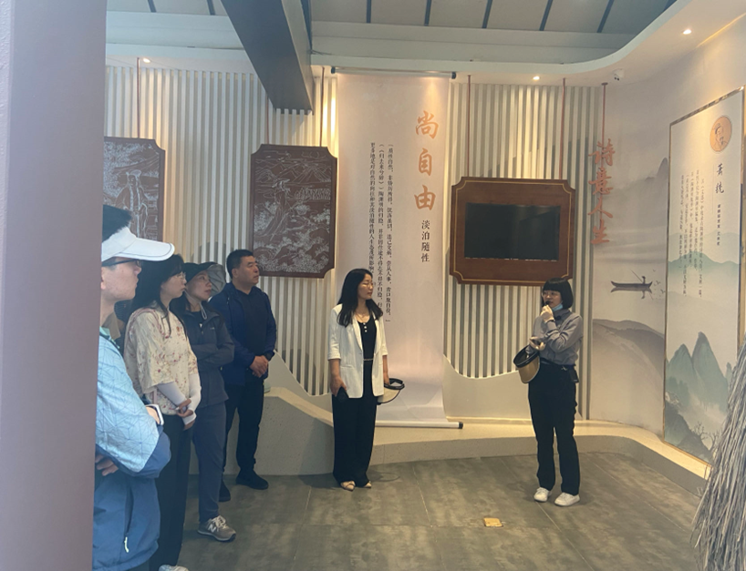 在陶渊明文化园,支部党员们在讲解员的娓娓讲述中,了解了陶渊明“勤为民、诚儒学、不折腰、尚自由”的政德思想,进一步学习了陶渊明亲率军民、挖河御潮的勤政故事,以及不畏权贵、“不为五斗米折腰”的廉洁事迹。在参观学习过程中,教职工们都被陶渊明清廉勤政的高洁品格所感动。
