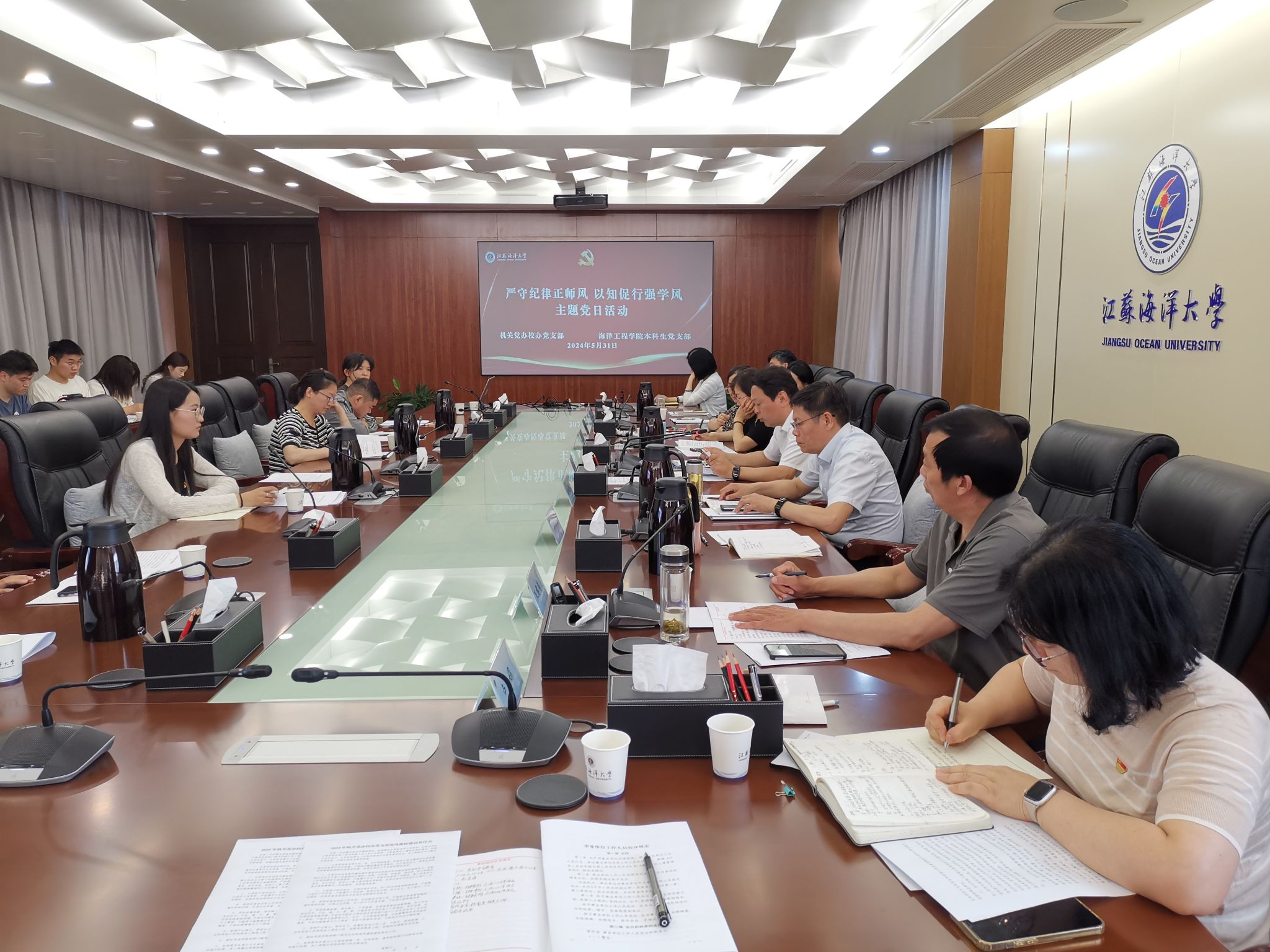为推动党纪学习教育走深走实,引导党员学纪、知纪、明纪、守纪,践行初心使命,牢固树立纪律意识和规矩意识,5月31日下午,机关党办校办党支部、海洋工程学院本科生党支部以及机关党委联合开展“严守纪律正师风 以知促行强学风”主题党日活动。整个活动由机关党办校办党支部书记毛宝海主持。