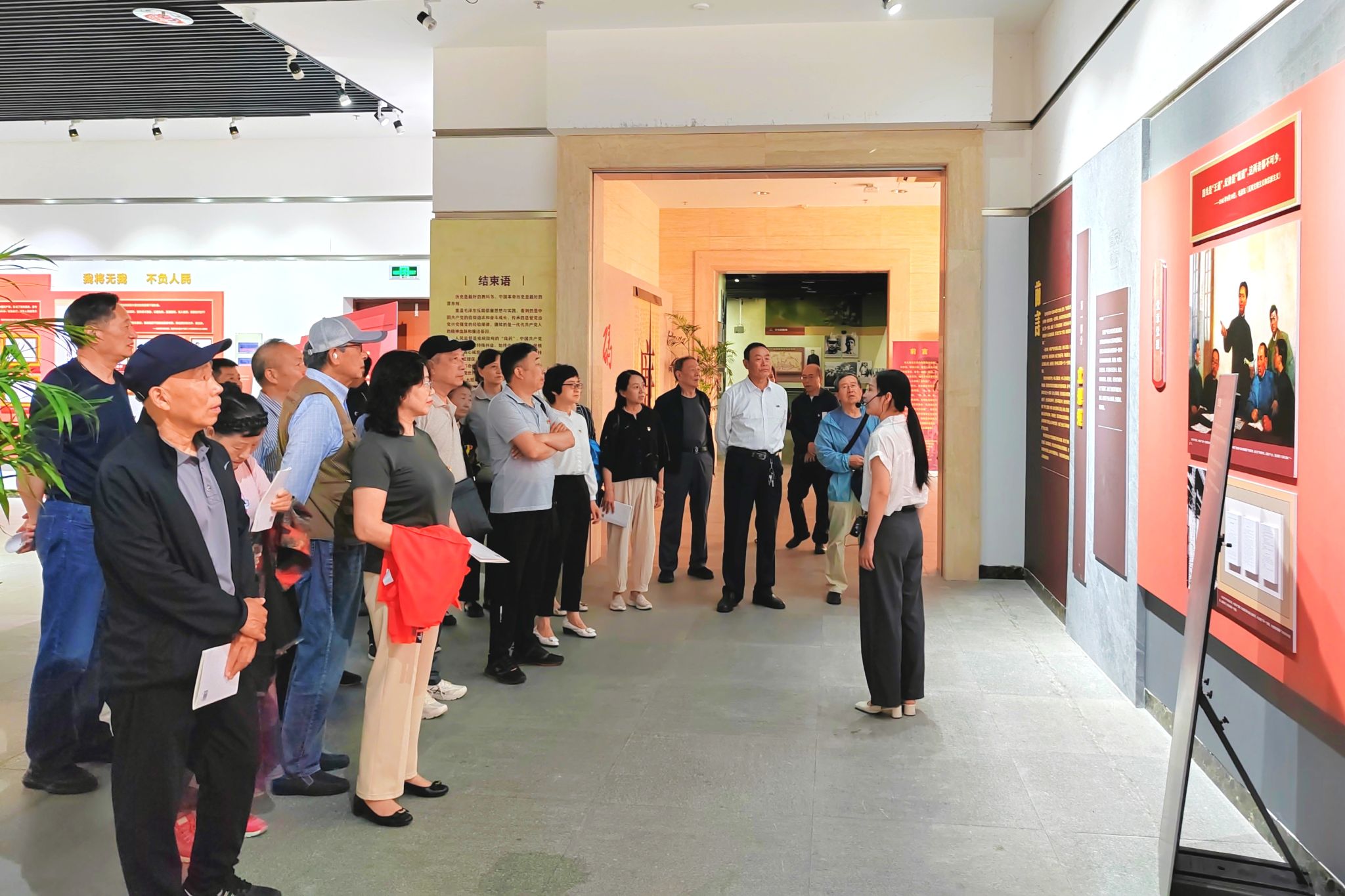 纪念馆内,正在举办“胜利的密码—毛泽东与反腐倡廉”主题展览。展览分为“立规矩”“严执行”“重教育”“作表率”“坚持自我革命,反腐倡廉永远在路上”五个部分。在讲解员的引导下,全体党员深入学习毛泽东关于党风廉政建设的思想,深入了解革命和建设时期我党开展反腐倡廉工作、加强党的作风建设的历史,深刻理解“让人民来监督政府”和“党的自我革命”跳出治乱兴衰历史周期率“两个答案”的精神实质和重大意义。