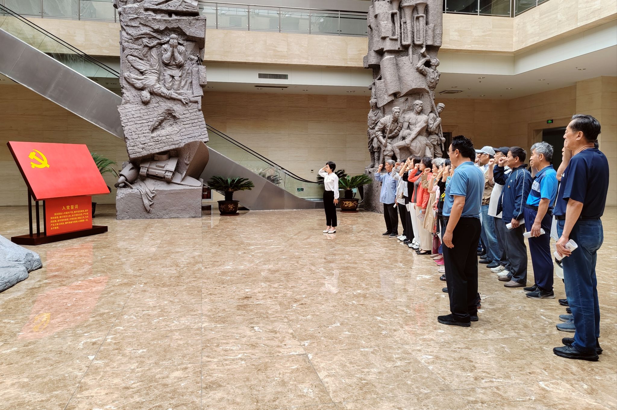 为扎实推进党纪学习教育,引导广大离退休党员干部学纪、知纪、明纪、守纪,做全面从严治党的坚定支持者和模范践行者,6月5日上午,离退休党工委所属的4个党支部组织党员走进连云港市革命纪念馆,联合开展“学党纪强党性 担使命建新功”主题党日活动。离退休党工委书记钱汉珍和第一、第二、第三、第四党支部的近30名老党员参加学习活动,并在纪念馆大厅重温入党誓词。