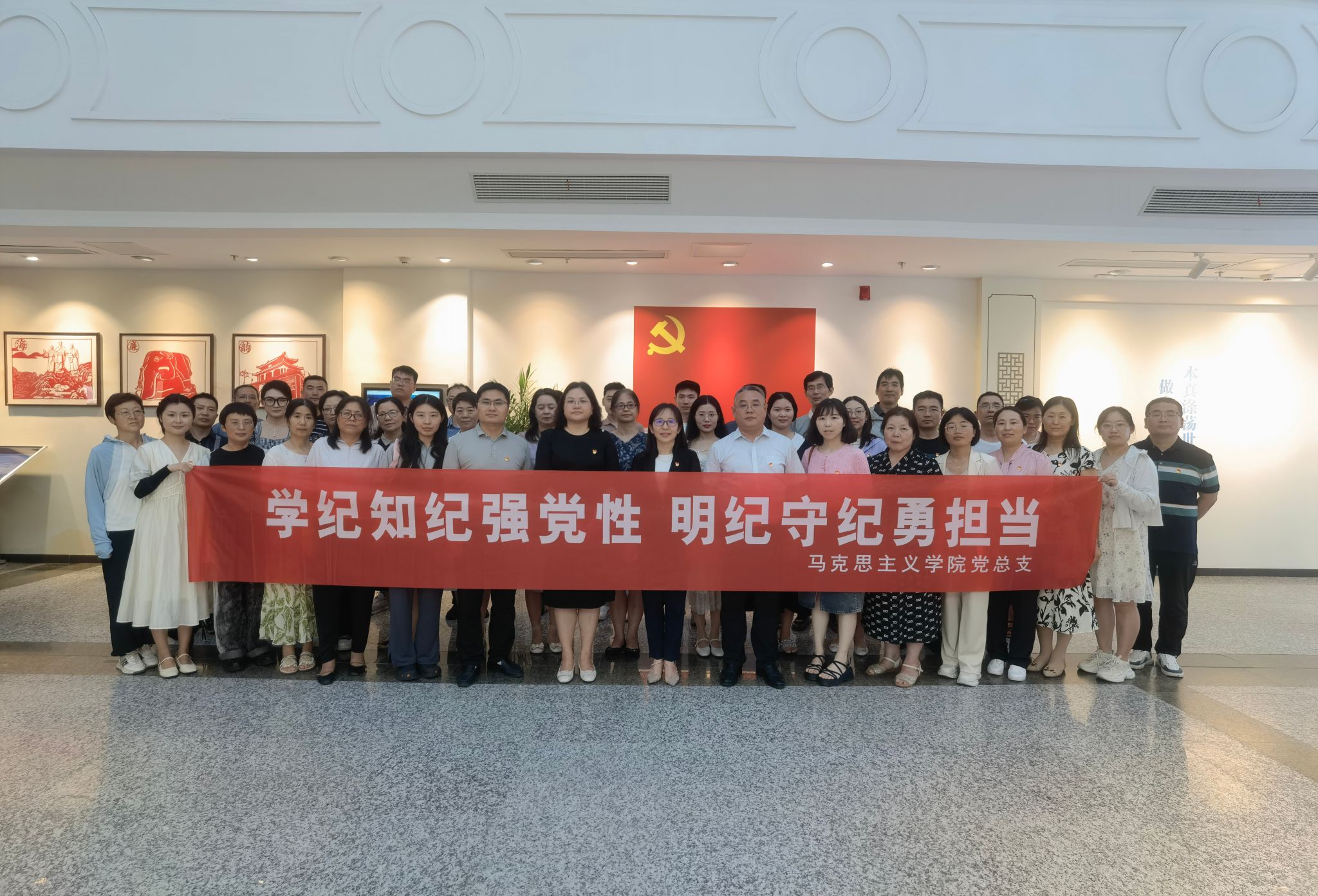 为推动党纪学习教育走深走实,引导党员干部进一步增强廉洁意识、纪法意识、规矩意识,7月3日下午马克思主义学院组织全体党员教职工赴海州区纪法教育基地开展主题党日活动。校党委常委、副校长金芙蓉以普通党员身份参加党日活动。