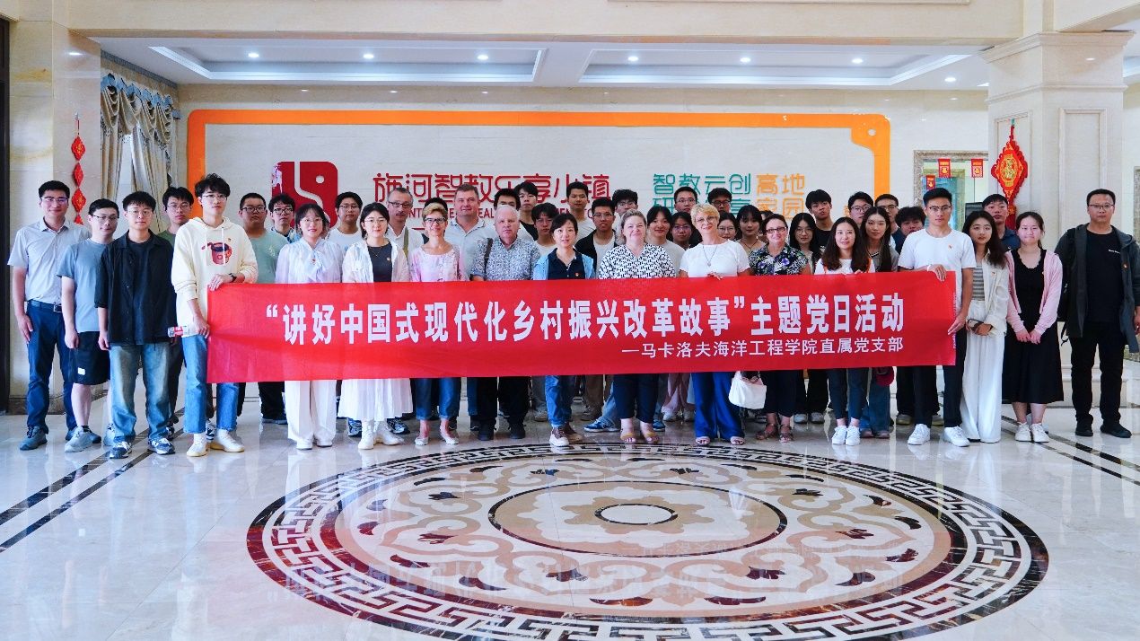 为贯彻落实党的二十届三中全会精神,积极推进国际化教育在服务区域高质量发展中彰显新作为,向世界讲好中国式现代化改革开放故事,9月28日,江苏海洋大学马卡洛夫海洋工程学院直属党支部到淮安市施河镇开展“讲好中国式现代化乡村振兴改革故事”主题党日活动,学院全体党员、学生代表和外籍教师参加本次活动。施河镇人大主席杨明翠、党委副书记陈鑫、党政办公室主任王伟陪同参加活动。