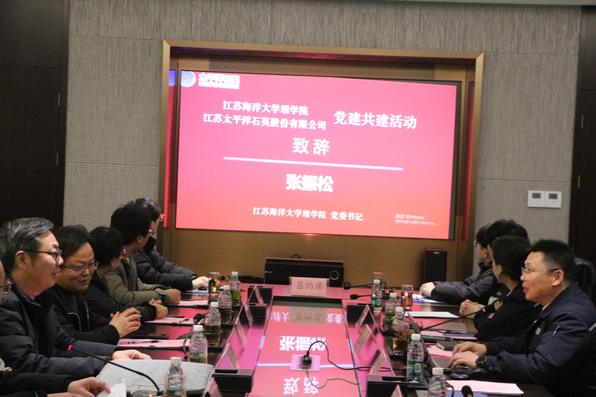 为深入贯彻党的二十大精神,积极落实国家关于深化产教融合、促进教育链与产业链有机衔接的政策要求,12月18日下午,产业链党建引领—太平洋石英光电科技产业学院开展产学研系列活动。江苏海洋大学理学院党委和江苏太平洋石英股份有限公司党支部举行了党建共建签约仪式,同时举办了“光电前沿—行业面对面”产学研系列活动。东海“晶工科创”党建共建理事会成员、江苏海洋大学理学院党委班子成员、太平洋石英股份有限公司党支部班子成员、太平洋石英光电科技产业学院理事会及管理机构成员、产业学院相关师生代表共同参加了本次活动。
