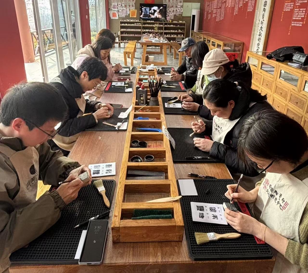 陶瓷印篆刻作为中国“诗书画印”传统艺术的重要组成部分,独创的篆刻技法以刀为笔、以泥为纸,将书法、雕刻与陶瓷工艺融为一体,被列入省级非物质文化遗产。中国陶瓷印文献研究中心负责人魏小勇老师从其历史脉络讲起,现场演示了核心技法精髓。党员们手握刻刀,在素坯上精心雕琢,或篆刻姓名印章以铭初心,或雕刻美好吉语以寄愿景。