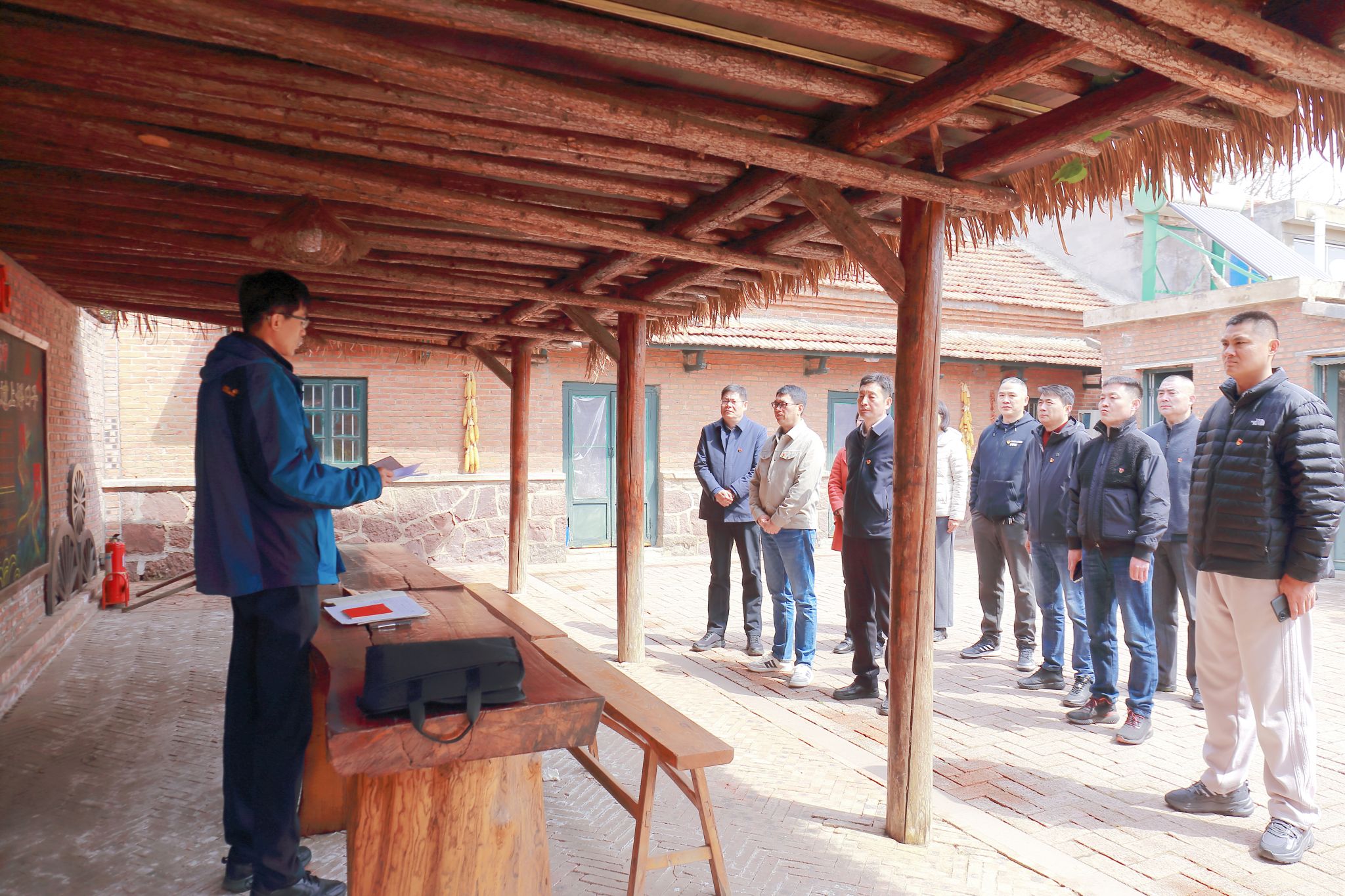 专题党课砺初心,凝心聚力谋发展。瞻仰结束后,姜兵带领大家一同来到参加过淮海战役“支前”的老人王克昌家里,为全体党员讲授专题党课。姜兵强调全体党员要以此次学习教育为契机,将红色精神融入工作岗位实践,强化宗旨意识,走好群众路线,夯实使命担当,切实把学习教育成果转化为攻坚克难、真抓实干的不竭动力,在服务师生一线中当先锋、作表率。