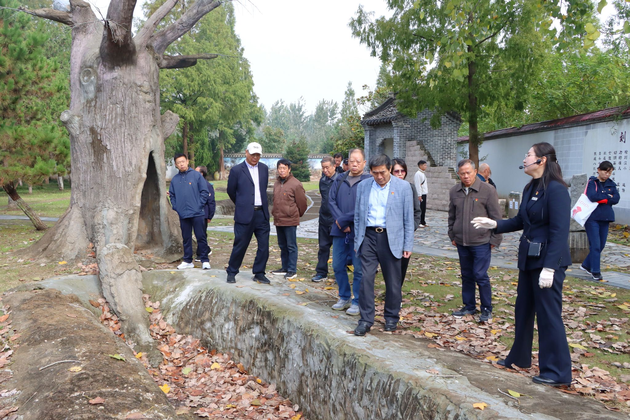 走进“刘老庄连”纪念园,大屏上播放着“刘老庄连”2015年英模方队、2019年和2025年战旗方队三次接受党和人民检阅的场景。大家跟随讲解员,有序走进纪念馆,详细了解1943年早春发生的那场惊心动魄的战斗。老党员们神情凝重,缓步参观,不时驻足凝视,看图片、观视频,追思八十二烈士的英雄壮举。