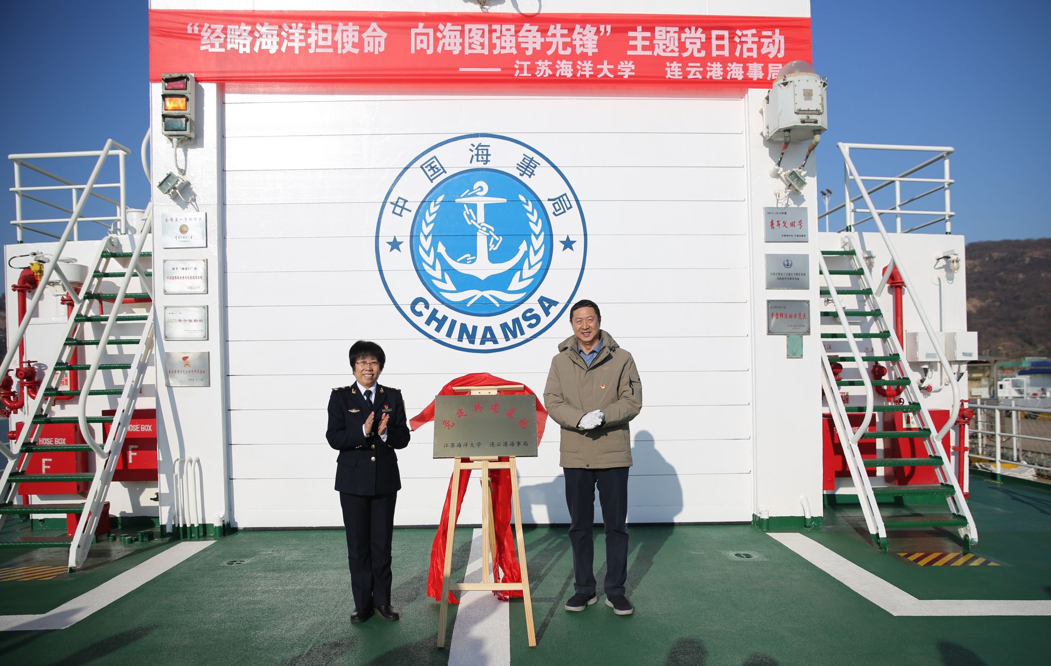 为了进一步落实党的二十届四中全会和2025年中央经济工作会议精神,提前做好调研工作,近日,机关学工处党支部、商学院学生第三党支部、综合党支部前往连云港海事局,与连云港海事处党支部联合举办了“经略海洋担使命,向海图强争先锋”主题党日活动。商学院党委书记万金店、院长孙军、学生处副处长张岳、商学院党委副书记王智金和部分师生党员代表参加了此次活动。