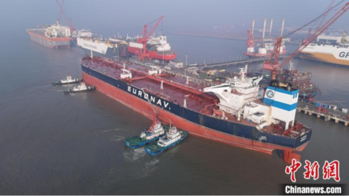 1月19日,长江主航道通航史上最大的进江油轮——30万吨级超大型油轮“阿尔萨斯”轮在江苏南通靠泊。 (南通海事局 供图)